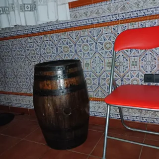 Este barril de madera aporta un toque rústico y decorativo a cualquier espacio. El grande se puede usar de mesa para estar depie y el pequeño de mesita. El grande por 65 euros y el pequeño por 35 - Material: Madera. - Colores: Negro y marrón.