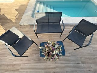 Conjunto para terraza prácticamente nuevo. Ideal para disfrutar del buen tiempo. - Incluye mesa y sillas. - Material resistente y fácil de limpiar. - Perfecto estado de conservación. pago contra reembolso nuevo con garantia