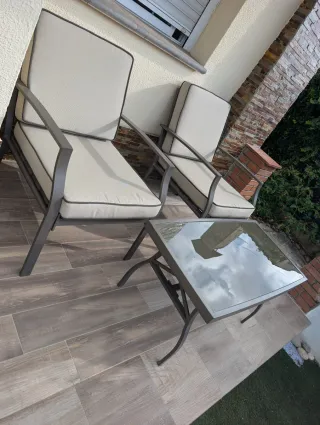 Conjunto de jardín NUEVO, ideal para disfrutar del buen tiempo. Incluye sillones, mesa y cojines. Material resistente ✅ Garantía de fábrica 📦 Entrega en su embalaje original 🚚 Envío disponible a toda España