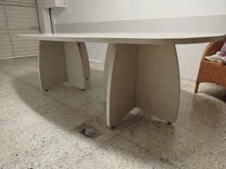 Mesa de terraza ovalada blanca de 2'40 por 1'20 m.