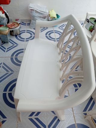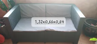 Muebles de terraza en buen estado, ideales para disfrutar del aire libre. Se venden 2 sillones y un sofá con sus cojines, además de una mesa de centro. - Perfectos para balcones o terrazas pequeñas. - Diseño elegante y moderno. - Estructura resistente y fácil de limpiar.