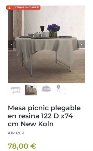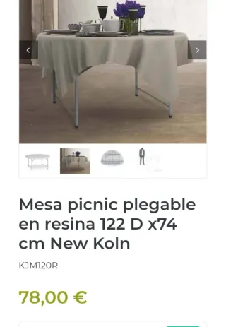 Mesa picnic plegable en resina 122 D x74 cm New