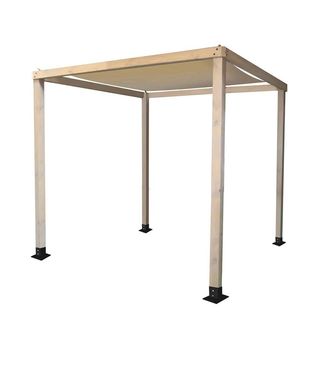 Pérgola de madera de pino para jardín con estructura formada por 4 postes y una lona o toldo fijo beige en la parte superior. Está diseñada para exteriores, ya que cuenta con tratamiento anti fungicida-insecticida. Consigue una zona resguardada en tu jardín con este cenador robusto y resistente que cubrirá un espacio amplio en la que poder colocar tu mesa y sillas para tus comidas o cenas de verano. Su parte superior te ofrece dos opciones de configuración gracias a la lona que incluye y que podrás colocar o retirar según tus necesidades. Solo tendrás que usar los ganchos para fijarla a la estructura de forma rápida. Característi...