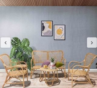 Características: - Medidas sofá: 108x72x85 cm. Butacas: 62x74x86 cm. - Medidas asiento al suelo butacas: 37 cm. - Medidas mesa auxiliar: 40x40 cm. Mesa centro: 52x45 cm. - Material: Ratán Natural. Marrón - Peso sofá: 8 kg. Butacas: 4,5 kg. - Peso mesa auxiliar: 2 kg. Mesa centro: 2,5 kg. - Uso: Interior y Exterior (aplicando tratamientos específicos).