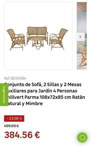 Conjunto de jardín: sofá, 2 sillas y mesa