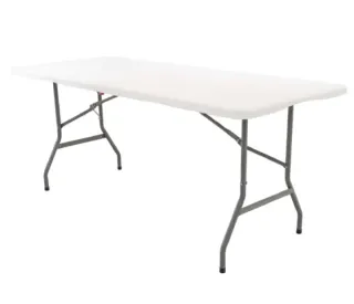 !Presenta pequeñas marcas de golpes en el plástico (señaladas en las fotos con círculo rojo), pero en general está como nueva, sin uso real! Mesa plegable de resina modelo Gardiun New Koln de 240×74×74 cm, muy resistente y práctica para interior o exterior. Estructura con patas metálicas de acero con recubrimiento anticorrosión, tablero de polietileno de alta densidad (HDPE) en color blanco, superficie fácil de limpiar y de gran durabilidad. Sistema de plegado con asa de transporte para mover y guardar cómodamente. Perfecta para eventos, camping, comidas familiares o uso profesional.