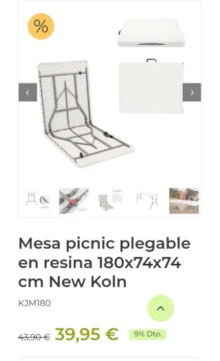 👉 La mesa presenta con golpes casi imperceptibles (marcadas en fotos) Conjunto plegable portátil Gardiun New Koln formado por mesa (180×74×74 cm) y 2 bancos en resina color blanco. Tablero fabricado en polietileno de alta densidad con protección UV, resistente y fácil de limpiar. Estructura en acero con patas tubulares de Ø13–25 mm, diseño estable y duradero. Plegable, se guarda y transporta fácilmente sin necesidad de montaje. La mesa soporta hasta 150 kg. Perfecto para jardín, terraza, camping