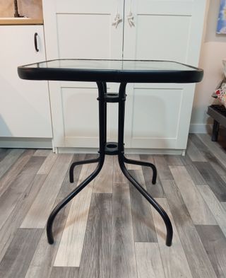 Mesa para terraza , ideal para exterior. Es una mesa cuadrada de 60cm x 60 cm. - Estructura de metal resistente. - Perfecta para espacios pequeños. Tengo 2.