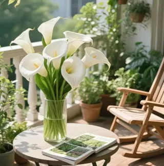 20 Flores Artificiales Blancas y Verdes
