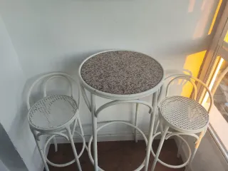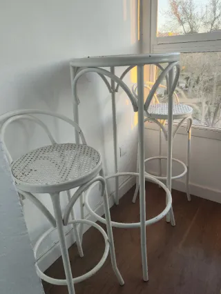 Mesa alta y 2 taburetes blancos