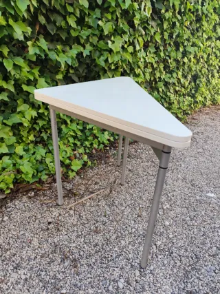 Mesa plegable triangular beige y gris