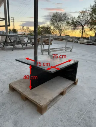 Mesa alta con estructura de metal y superficie de madera, para restaurar