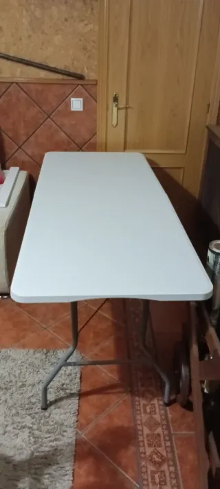 Mesa Plegable de Resina Nueva a estrenar Muy resistente y facil de montar Patas robustas metalicas plegables Medidas: 180 cm de largo 70 cm de ancho 74 cm de alto Se puede recoger en Arroyomolinos, Fuenlabrada o Móstoles Se hacen envíos
