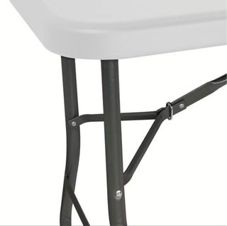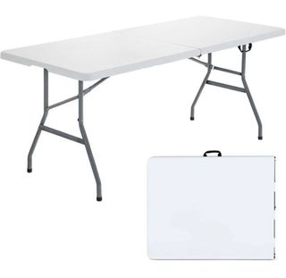 Mesa plegable de plástico, ideal para eventos o uso diario. Su diseño permite guardarla fácilmente. - Patas metálicas plegables. - Superficie lisa y resistente.