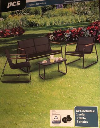 Conjunto de jardín Keter Nora de 4 plazas en color grafito. Incluye cojines y mesa auxiliar con almacenaje. Nuevo a estrenar. Precio PVP Amazon 229€, te ahorras 80€ - Mesa auxiliar con 35L de capacidad. - Posibilidad de 2 configuraciones de montaje (2+2 o 3+1). Se puede hacer envíos a península.