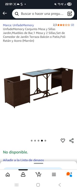 Mesa plegable de jardín + 2 sillas