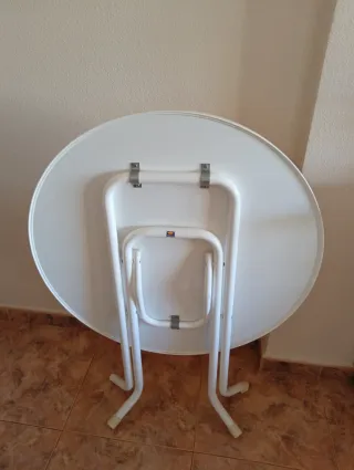 Mesa redonda plegable, ideal para terrazas o espacios pequeños. Su diseño permite guardarla fácilmente. - Patas plegables para un almacenamiento compacto. - Superficie lisa y fácil de limpiar.