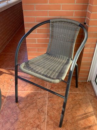 Conjunto de mesa y cuatro sillas apilables, perfectas para hostelería o uso en exteriores. - Diseño moderno y apilable para ahorrar espacio. - Estructura robusta y duradera. Sillas ratán sintetico 50 € unidad Marca expormin -Mesa plegable robusta 70 € unidad Hay dos mesas y ocho sillas Cada mesa con 4 sillas son 200 € Si la compra es por el total , en lugar de 400€ , serian 380€