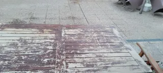 Mesa de teka para exterior, lista para restaurar. Se encuentra a medio lijar, lo que facilita el proceso de renovación. - Ideal para proyectos de bricolaje y restauración. - Perfecta para darle un nuevo aire a tu jardín o terraza. SE PUEDE SUPLEMENTAR A 2.10 CM