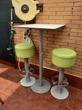 Pack mesa y 4 taburetes 80 sillas de telepizza (venden fundas) medida mesa 59x59 1.12 alto alto taburetes 80