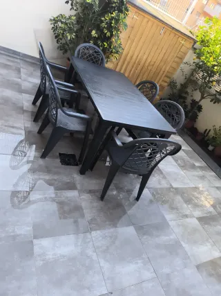 Mesa terraza Negro/Gris y 4 sillas a conjunto