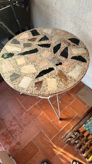 Taula de jardí de pedra. Mosaic molt bonic. Estructura de ferro molt estable i robusta