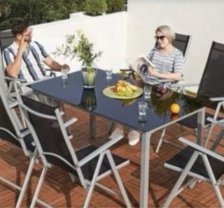 Conjunto mesa y sillas terraza jardín