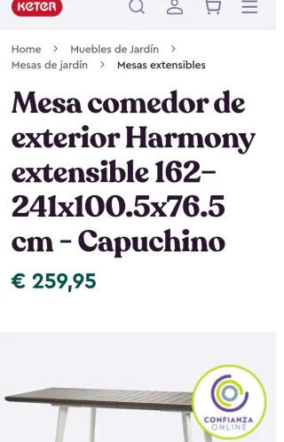 Precintada a estrenar. Puedo entregarla en la zona de Valladolid o Palencia. Mesa de jardín extensible Keter Harmony, con un diseño moderno y funcional. Perfecta para disfrutar de tus espacios exteriores. - Acabado en color marrón y blanco. - Fabricada en resina de alta calidad. - Para 6-10 personas.