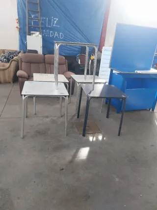 Mesa y cuatro taburetes en perfecto estado, medidas de taburetes con estructura de metal y base en madera 8X27X88. Venta por falta de espacio.
