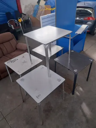 Conjunto de mesas de bar con un diseño moderno y funcional. - Estructura robusta de metal. - Superficie de madera. - Combinación de colores plateado y negro. OFERTAAAAA LAS 5 X 40€ OPORTUNIDAD 1 SOLA 10€