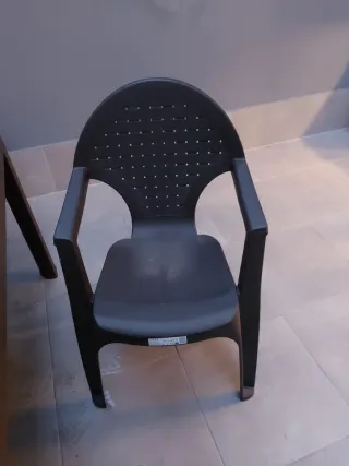 Cómoda, ergonómica y económica silla de terraza o jardín. Plástico del bueno, sólido y robusto. En gris granito elegante, a juego con la mesa que tengo a la venta en esta misma plataforma. Muy ligeras y perfectamente apilables para ocupar poco espacio.
