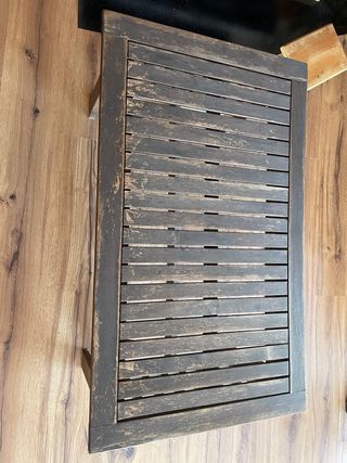 Hola! Vendo una mesa de jardín (140x85x73cm) con 4 sillones de color marrón oscuro (resina). La mesa se ha deformado debido al calor y es visible una ligera concavidad hacia adentro. El conjunto de muebles por 80€. Un saludo!
