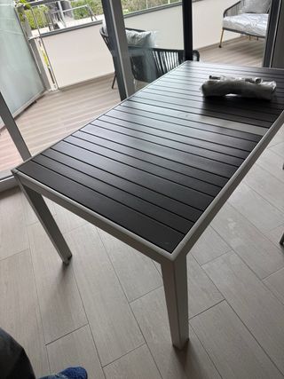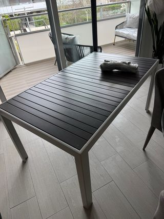 Mesa de exterior de aluminio de Ikea, con un diseño moderno y resistente. - Dimensiones: 155x90x72cm. - Materiales: Metal