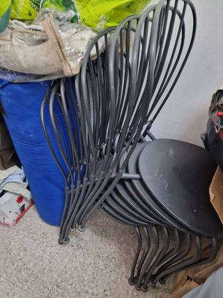 Sillas apilables de gran resistencia.Muy poco uso.8 unidades a 15 euros la unidad si se venden todas juntas hago precio. Las mesas están disponibles pero no entran en el precio