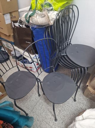 Conjunto de mesas y sillas para terraza. - Estructura de metal. Aluminio, 15€ mesa ud y 10€ud silla.