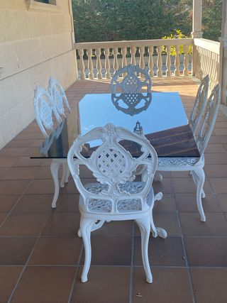 se vende mesa y sillas para jardin o terraza estan casi nuevas las medidas estan en la ultima foto