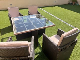 Super oferta¡¡ Conjunto de exterior marrón RATTAN 90€ + portes € CONSULTAR tienda física en Valencia Cel: 641755310 preguntar por DANNA Tenemos financiación: 3 6 y 12 cuotas Hacemos envíos contrareembolso en Valencia, Barcelona y Alicante Conjunto de mesa y sillas de exterior en ratán marrón. Ideal para disfrutar de momentos al aire libre. - Mesa con superficie de cristal. - Sillas con estructura de ratán.