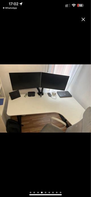He cambiado la mesa que usaba para teletrabajo, y la he sustituido por una elevable por necesidades de salud. Tiene unos acabados magníficos , es de marca Ikea de la línea de empresas. Tiene signos de uso diario, pero ningún rayón importante que se vea. Las patas son de metal , al igual que el resto de la estructura, excepto el tablero. El tablero es mate/brillante para evitar reflejos trabajando. En su momento, la estructura y el tablero costaron 280 Euros. negociable... si lo prefieres me puedes escribir al 650161330 por Whatsapp.