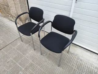 se venden 2 sillas simples fijas de una oficina por cese de negocio estaban en una sala de espera y también tengo varias sillas de escritorio giratorias con y sin reposa brazos con ajuste de altura Están recién limpias con aspirador de tapicerías también tengo algunas mesas se escuchan ofertas por ellas