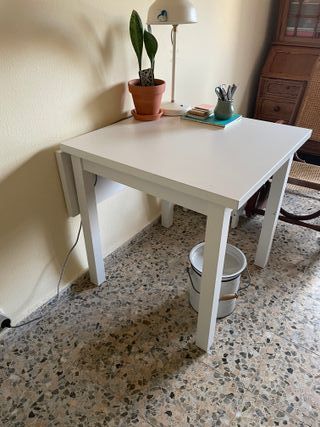 ¡Ideal para espacios pequeños! 🏡 Mesa moderna y práctica, perfecta para cocina, comedor o terraza. 📏 Medidas: • 80 cm de ancho x 40 cm de fondo (cerrada) • Extensible hasta 80 cm • Altura: 75 cm ✨ Características: • Color blanco, diseño limpio y elegante • Patas de acero, resistentes y estables • Abatible y extensible, ideal para 4 personas • Ocupa poco espacio y se pliega fácilmente 🔸 Tiene algún pequeño toque de uso, pero en buen estado general y totalmente funcional.