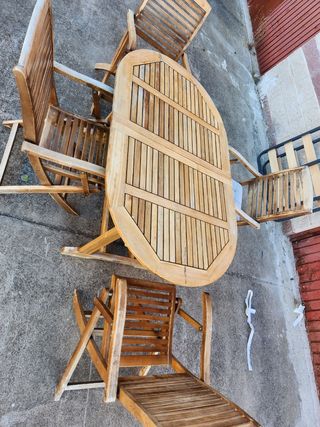 Mesa jardín + 6 sillas madera