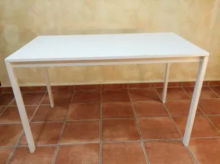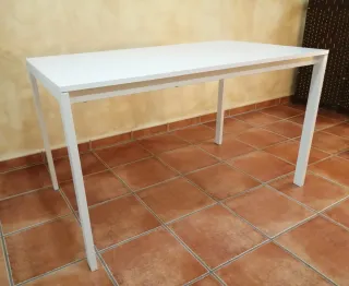 Mesa de terraza de Ikea, ideal para exteriores. Su diseño moderno se adapta a cualquier espacio. - Estructura metálica resistente. - Tablero blanco fácil de limpiar. Presentea alguna marca roces.