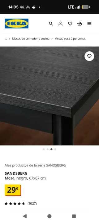 Mesa IKEA SANDSBERG 67x67 cm Negra