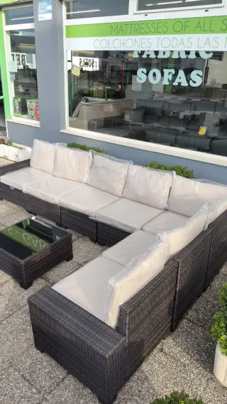 Conjunto de terraza de Ratatn PE, moderno e ideal para exteriores o jardin, medida de 280x140xx140 cm con sus cojines en color beige ( color unico) Precio de OFERTA consulta porte de envio Nueva de fabrica con garantia Pagas al recibir