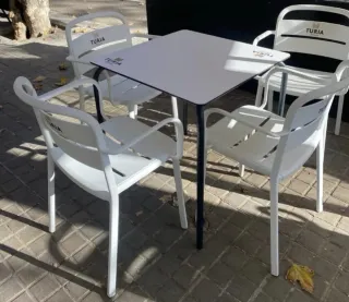 Mesa de exterior de gran calidad, perfecta para terraza o jardín. Diseño moderno y resistente, ideal para cualquier espacio. **Mesa apilable, Material: Tablero DurelTOP en polipropileno tratado anti UV y teñido en masa. Patas de aluminio pintado blanco fecto mate. Ta-cos regulables. - Dimensiones: 120x70cm. - Materiales de alta durabilidad. - Manual nstrucciones de uso y conservación. SE ENCUENTRA MUY NUEVA, EN PERFECTO ESTADO, SIN DAÑOS, DESGASTE NI RALLADAS. Entrega en mano. Vendo solo la mesa por interesarnos una más grande y por esto es muy nueva.