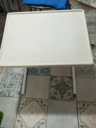 Mesa auxiliar plegable. Es fácil de guardar y transportar. Mesa auxiliar blanca Se puede poner en 6 alturas Muy práctica Ideal para sofás , sillón , cama... Medidas 40 cm x 50 cm de la parte superior En perfecto estado No envio por correos