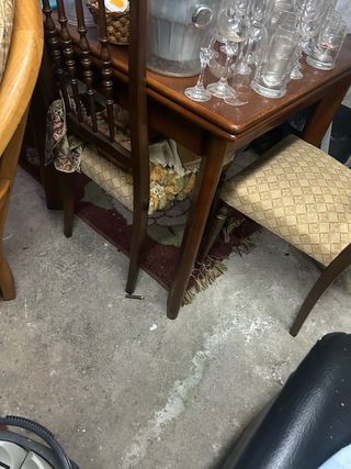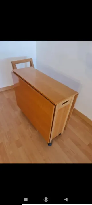 regalo Mesa de salón con diseño plegable, ideal para optimizar el espacio. - Acabado en tono marrón oscuro. - Fabricada en madera resistente. a poder ser venir en esta semana a por ella plazo límite hasta el viernes por la tarde o la tirare
