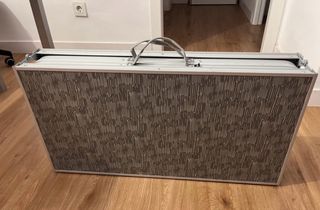 Mesa plegable y regulable ideal para trabajar o estudiar con el portátil desde la cama, el sofá o cualquier superficie cómoda. Ligera, estable y práctica. La vendo porque no la uso nada ya que ahora tengo una mesa normal. Se ha usado muy poco Características: • Superficie con ángulo de inclinación ajustable (0°, 15°, 25° y 35°). • 5 niveles de altura regulables para adaptarse a distintas posturas. • Diseño ergonómico, con reposamanos suave y dos clips de sujeción que evitan que el portátil se deslice. • Muy estable, soporta hasta 10 kg. • Ligera y portátil, pesa solo 2,45 kg. • Se pliega fácilmente para guardarla o transportarla.