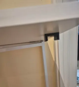 Mesa de color blanco plegable para colgar en pared a cualquier altura.Cerrada mide 17x77 y abierta 55x77.