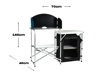 Mesa Cocina de Camping con Paraviento y Almacenaje